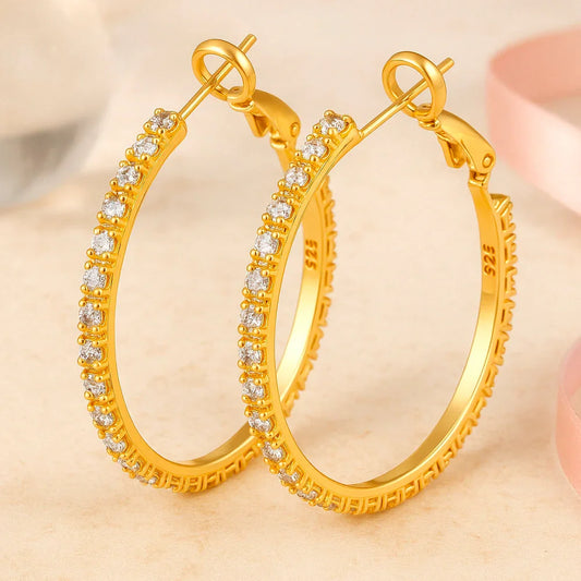 Ohrringe aus 925er Sterling-Silber, vergoldete Creolen, verschiedene Größen
