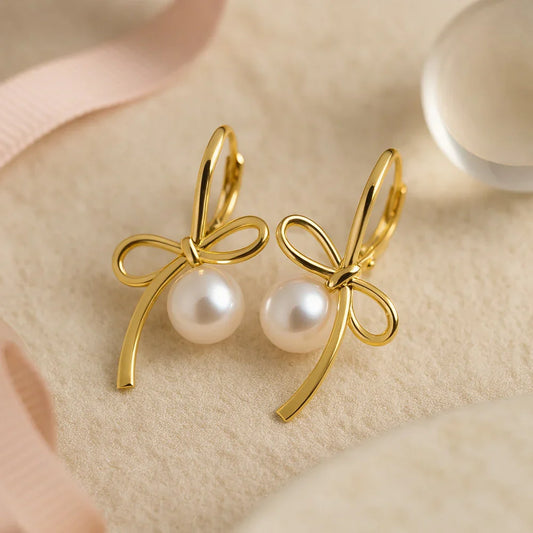 Ohrringe aus 925er Sterling-Silber, Creole mit Perle und Schleife