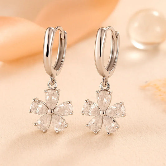 Ohrringe aus 925er Sterling-Silber, Hängende Zirkonia Blumen